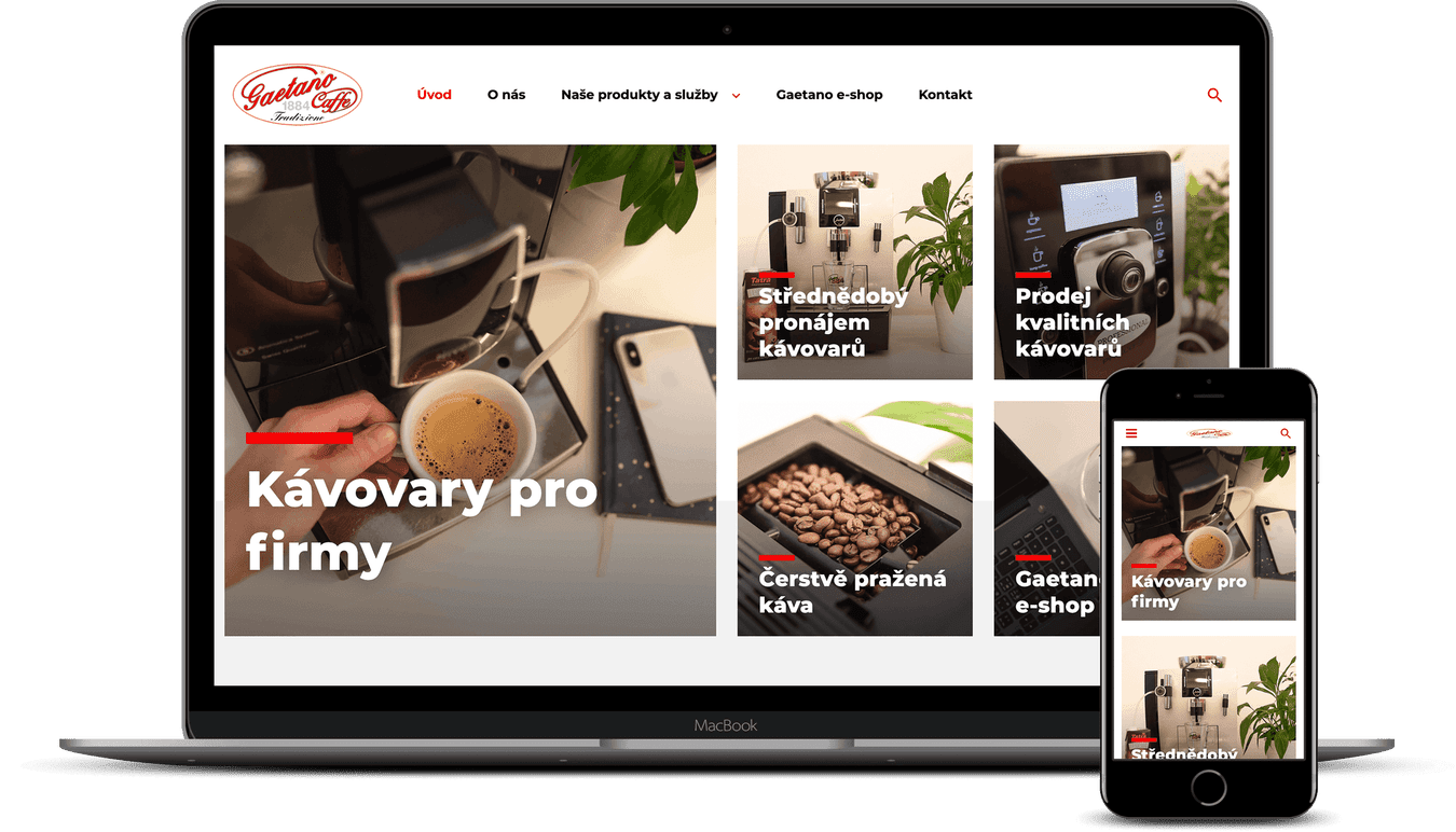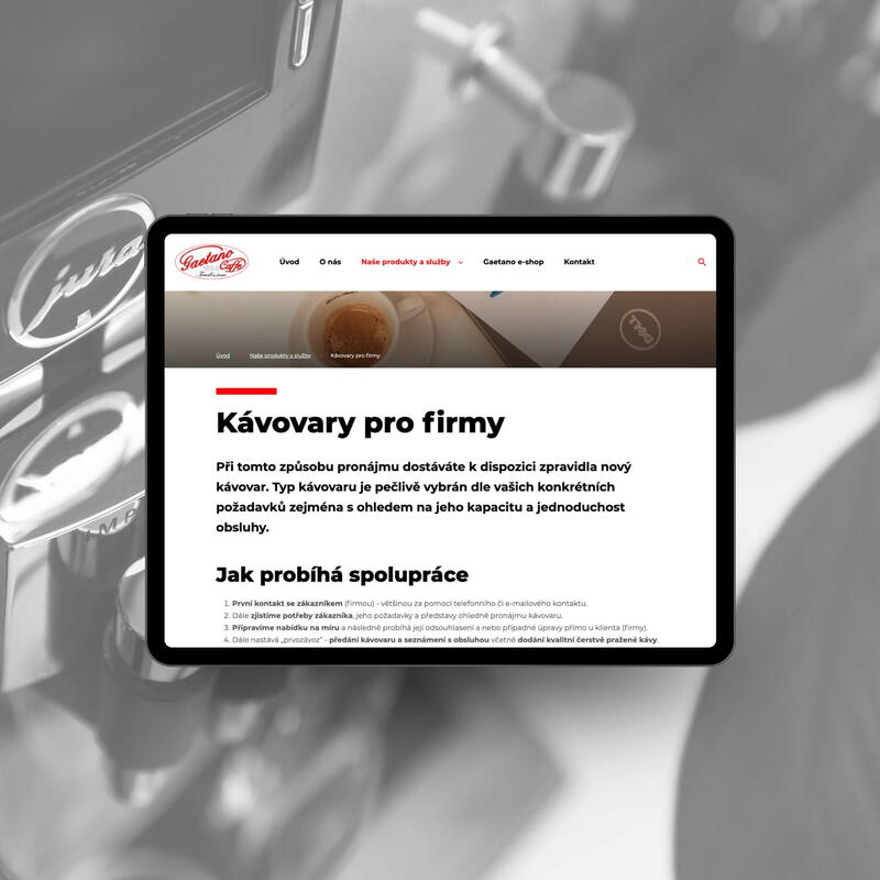 Tvorba webu pro Gaetano Caffé z Pardubic Web, na kterém si pronajmete nebo koupíte kávovar