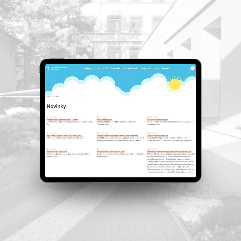 Jelikož by se pro nový web mateřské školy nehodilo šablonovité řešení, přizpůsobili jsme grafiku vlastním designem. Design byl doplněn animacemi pro maximální požitek z nového webu.